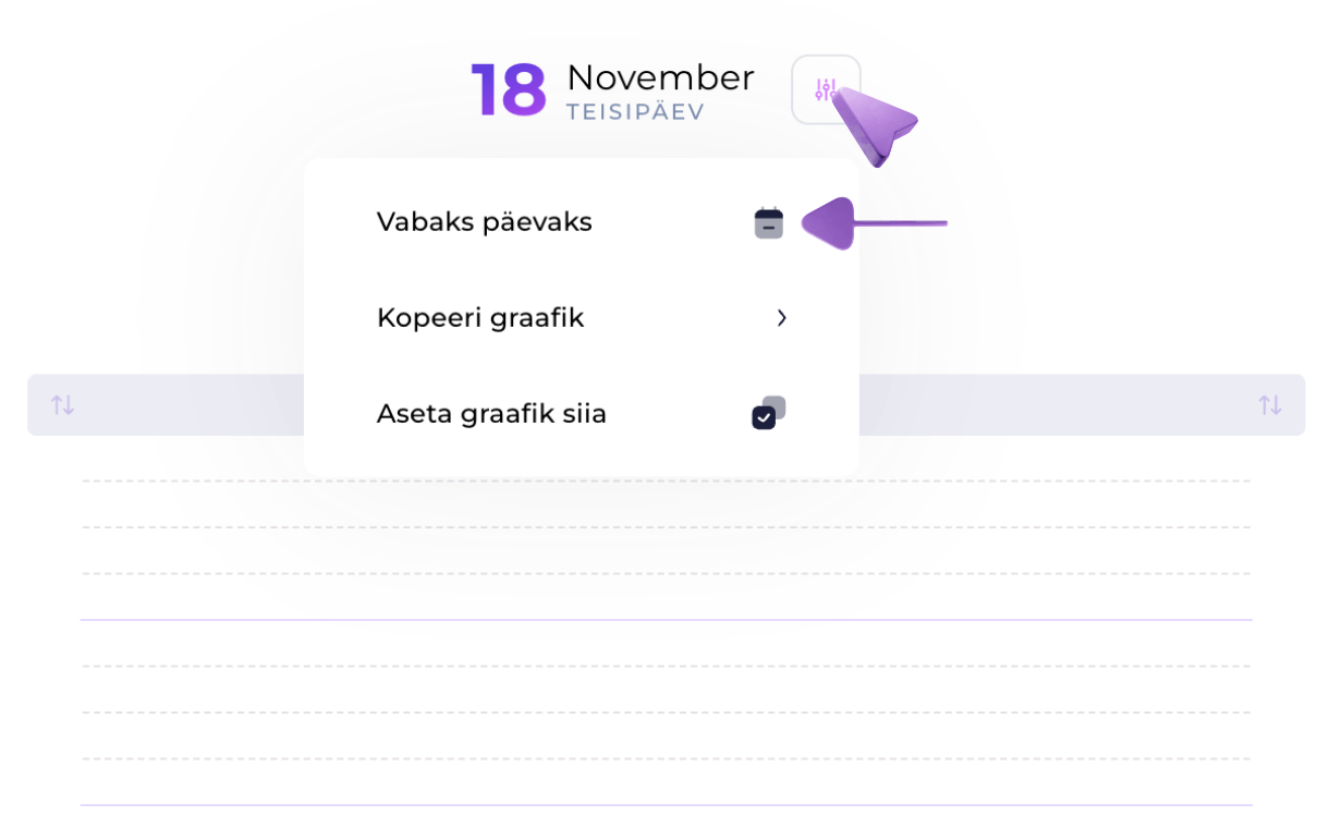 Töögraafiku muutmine ei tÀhenda, et peaksid looma tÀiesti uue graafiku. Piisab, kui muudad konkreetse pÀeva tagasi vabaks ja kalendris seda tööpÀevana enam ei kuvata.