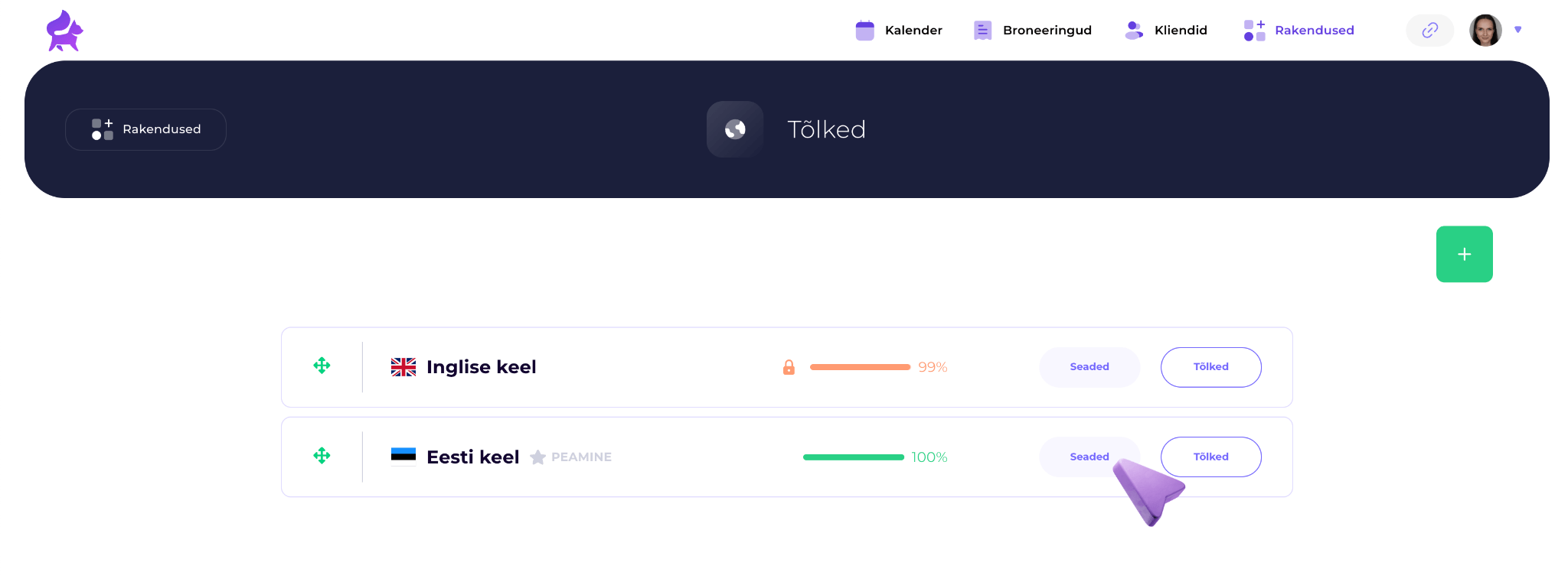 Kui soovid pakkuda kliendi jaoks valikusse mitut keelt, veendu, et kõik teenuste, kategooriate ja muude tekstide tõlked on korrektselt sisestatud. Siis tabab uus keel ehedalt kõiki vaateid ja klient tunneb end mugavalt igal sammul.