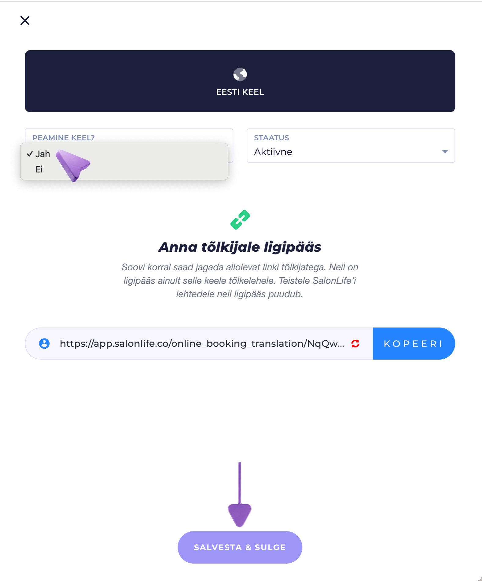 Kui soovid, et sinu online-broneeringu leht tervitaks kliente vaikimisi mõnes muus keeles kui eesti keel, siis on sul võimalus peamine keel hõlpsalt ära muuta. Järgnevalt leiad samm-sammulise juhendi, kuidas seda teha.