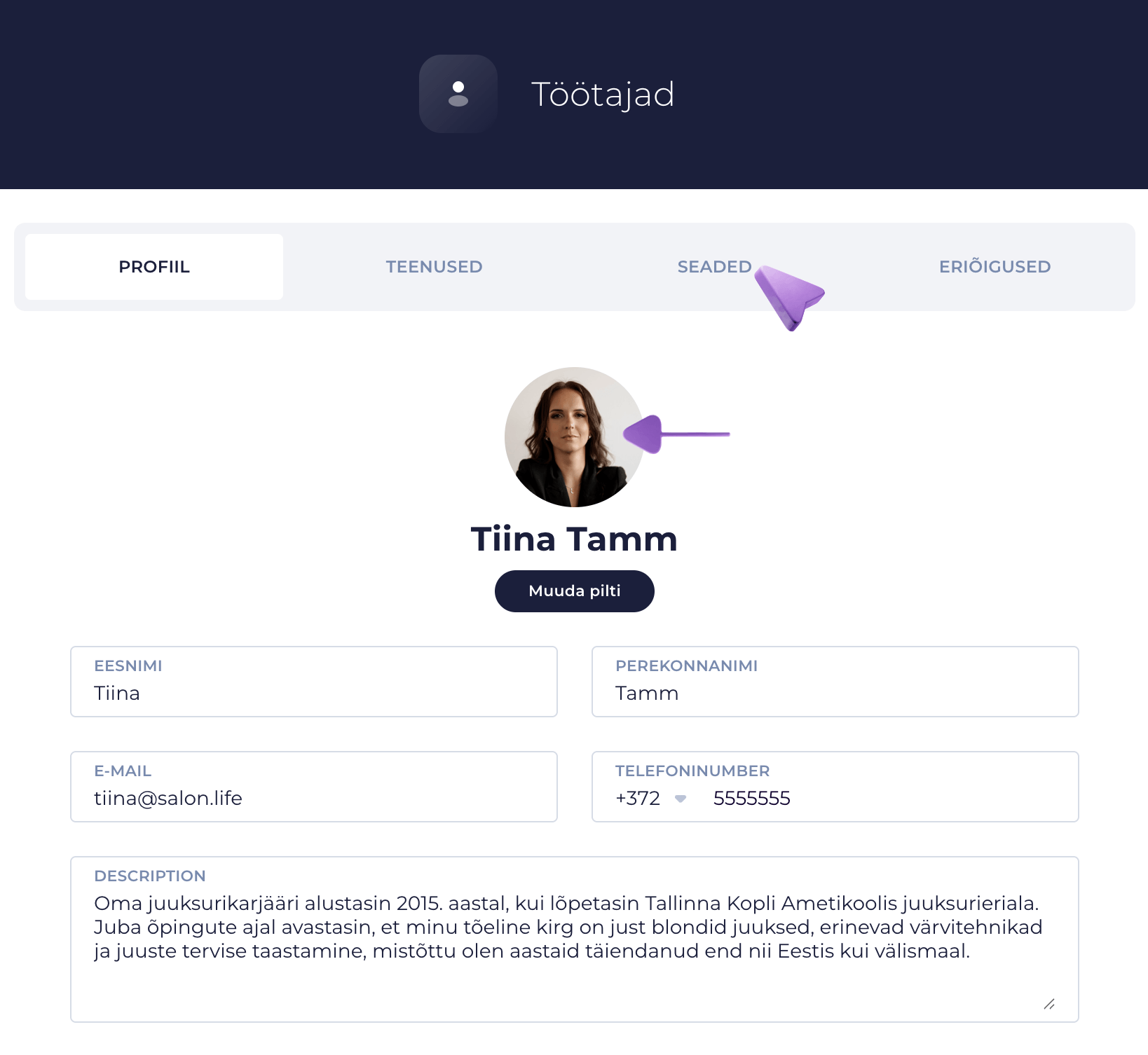 Viimane peamine seadistus puudutab töötaja profiile ja nende online broneerimisega seotud eelistusi.
