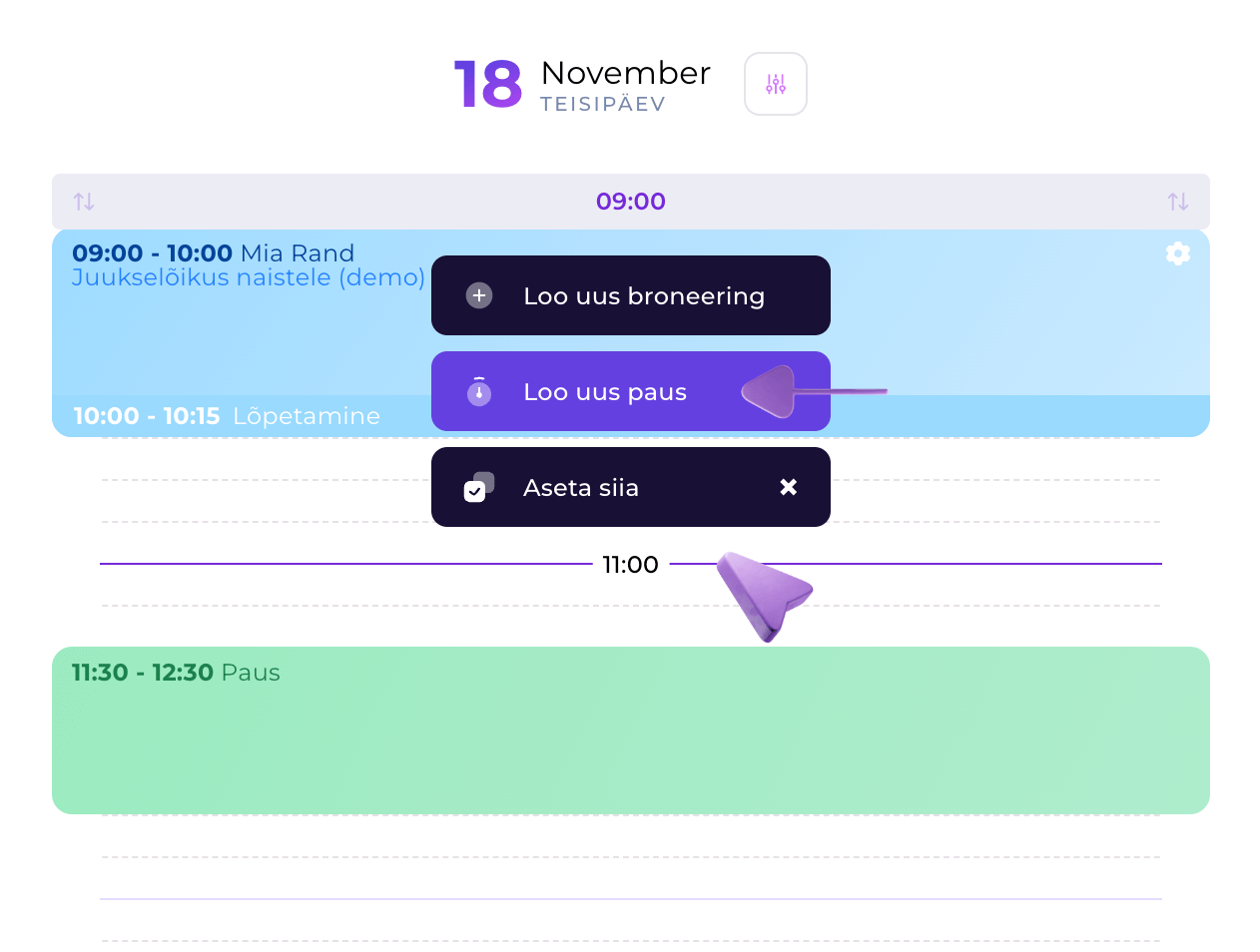 Kui sul on varasemaid broneeringuid, saad need kalendrisse ĂŒles mĂ€rkida: